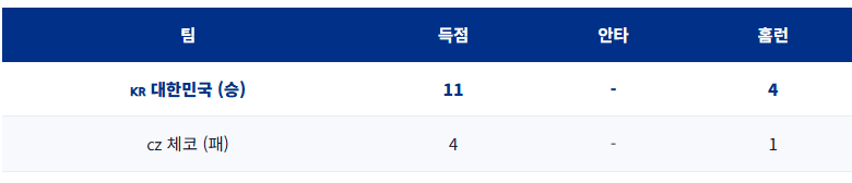 한국 야구 대표팀은 체코를 상대로 11대4 완승을 거두며 대회를 기분 좋게 출발했습니다.