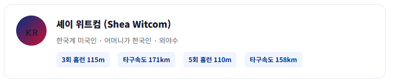 마이너리그 트리플A에서 강력한 장타력을 증명해온 위트컴은 WBC 첫 경기부터 연타석 홈런을 기록하며 한국 타선의 새로운 핵심 타자로 자리잡았습니다.