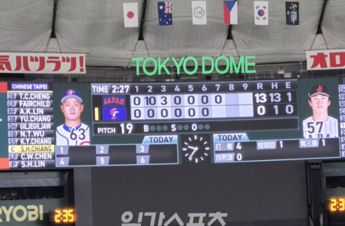 실제로 3월 6일 일본 vs 대만 경기에서