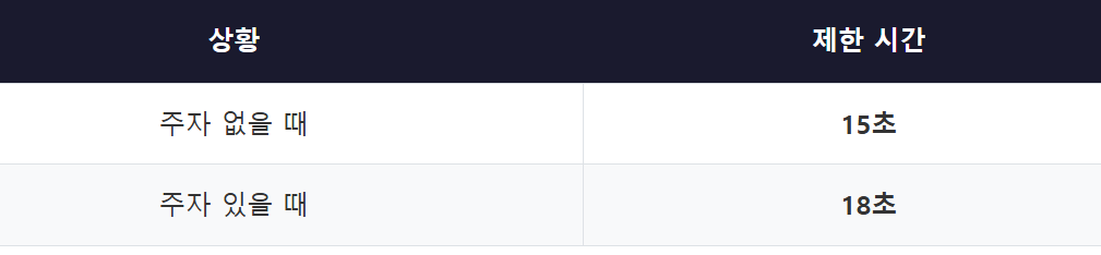 📌 KBO리그 기준(무주자 18초, 주자 있을 때 23초)보다 훨씬 빠른 템포입니다.