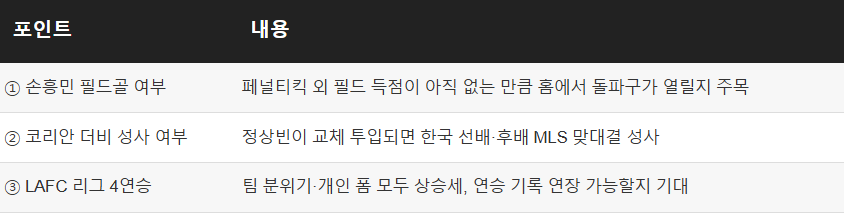 이번 LAFC vs 세인트루이스 경기에서 주목할 포인트는 세 가지입니다.