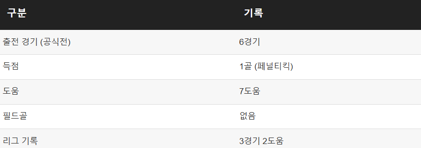 다만 도움 7개를 기록하며 팀 공격을 이끄는 핵심 역할을 하고 있습니다.